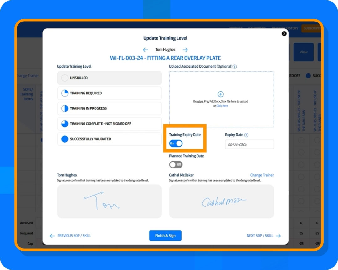 • Operators and trainers sign digitally in real time